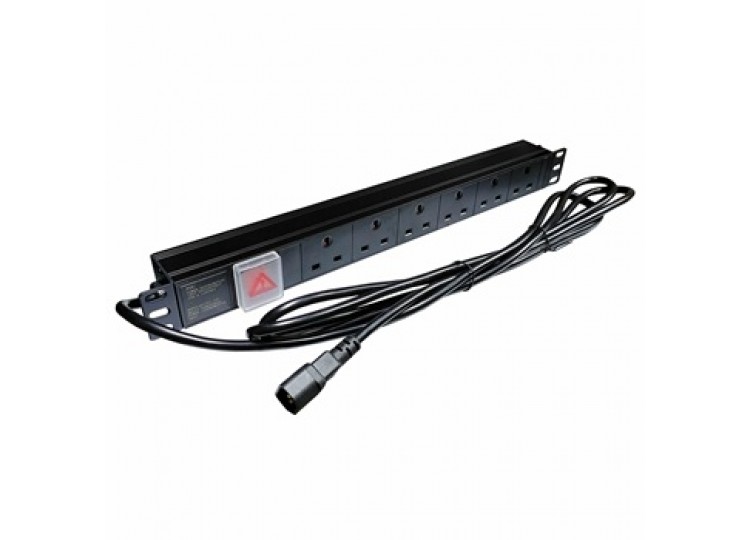 PDU 6 Way 13A 1.5U,19" Horizontal, UK Socket,C14 Plug 2m-BK.