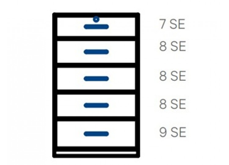 7 DU Top drawer / 3 x 8 DU / 1 x 9 DU |