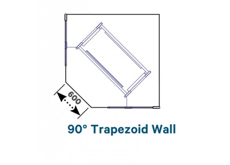 Worktops, 90° trapezoid wall, D1200 lowered.
